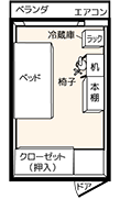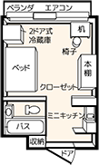 バス、トイレ、ミニキッチン、コインシャワーなどが共有となっているタイプの居室です。