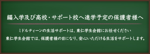 当学院の生徒も、いくつかの寮でお世話になっており、どの寮長さんもとても親切に面倒を見てくれます。また、食事の世話もしていただき、健康面でも安心して任せることが出来ます。学院から近い場所にいくつか寮があるので、生徒や保護者の方が、希望に添った寮を選べるという点も好評です。一人暮らしをする生徒を責任をもって、お預かりできる東仁さんの協力があってこそ成り立っています。これからもどうぞよろしくお願い致します。